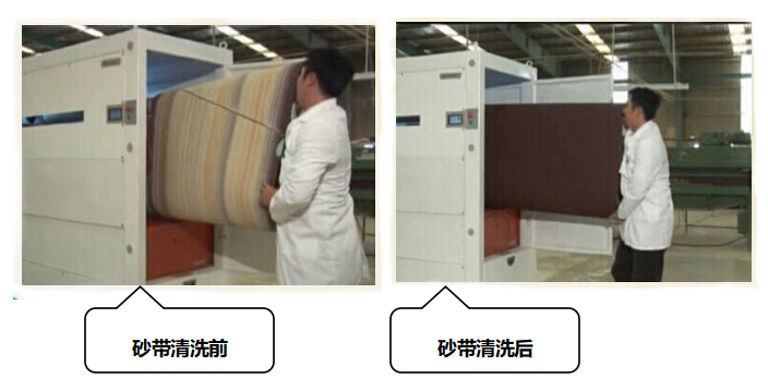 belino對木工業(yè)中砂帶因堵塞得不到最大利用而報廢的問題研發(fā)出整套“再生機(jī)“(砂帶脫屑工藝),不論堵塞或燒焦程度多嚴(yán)重的砂帶,此工藝能逐一脫屑使砂帶數(shù)次還原如新,既能大幅度節(jié)省成本且又幫助環(huán)保,給生產(chǎn)業(yè)來帶很高效益的工藝。 “再生機(jī)II”就是由belino所研發(fā)出來的一套專用機(jī)器,配以秘方特制的“砂帶脫屑劑”來發(fā)揮效果。不論砂帶有多糟或多焦,只要砂粒不被砂鈍,“再生機(jī)II”就能把頑固附在砂帶面的碎屑清除掉,并且不會對砂帶表面的樹脂造成損傷。每次洗好,砂帶還原新且功效如新。 ?舊帶面被堵塞的可能是實(shí)木油屑,底漆屑,甚至于樹脂的人造石屑,配合“砂帶脫悄劑”,“再生機(jī)II”也能神奇地全部翻洗如新,不留舊痕。