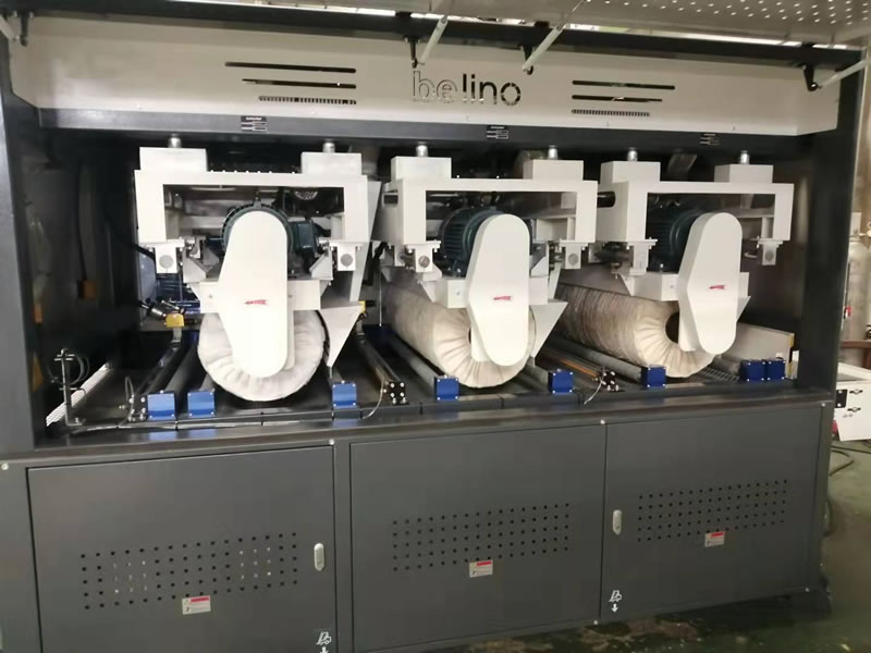 本拋光機適用于聚酯、聚氨酯或其它類型油漆的平面面板的拋光。 該機器也用于拋光一些歐洲國家使用的水性涂料。 堅固的焊接鋼結構,保證機器的穩定性和長壽命。 本機配有真空工作臺,確保小件的拋光。 兩個拋光輥由棉盤組成。一個輥垂直于工作方向,第二個輥傾斜10度。這使得第二卷可以除去在第一個卷的面板上留下的加工標記。兩個輥有一個垂直于被加工面板的擺動運動。該系統的設計是為了獲得更高的精加工質量。