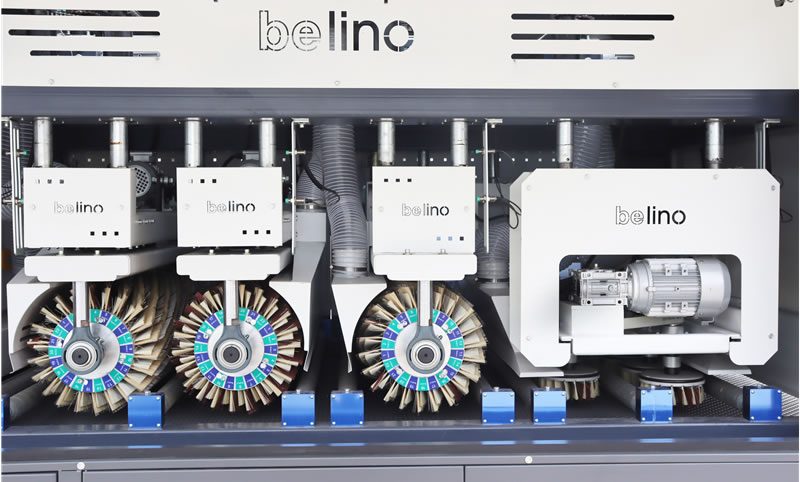 ⑨采用圓盤砂、多輥、螺旋輥組合,不僅使打磨砂光變得輕松、高效、優質,并幫助許多工廠大幅度降低勞動人手,提高生產效率和生產質量,同時降低人員與磨料成本,提高利潤空間