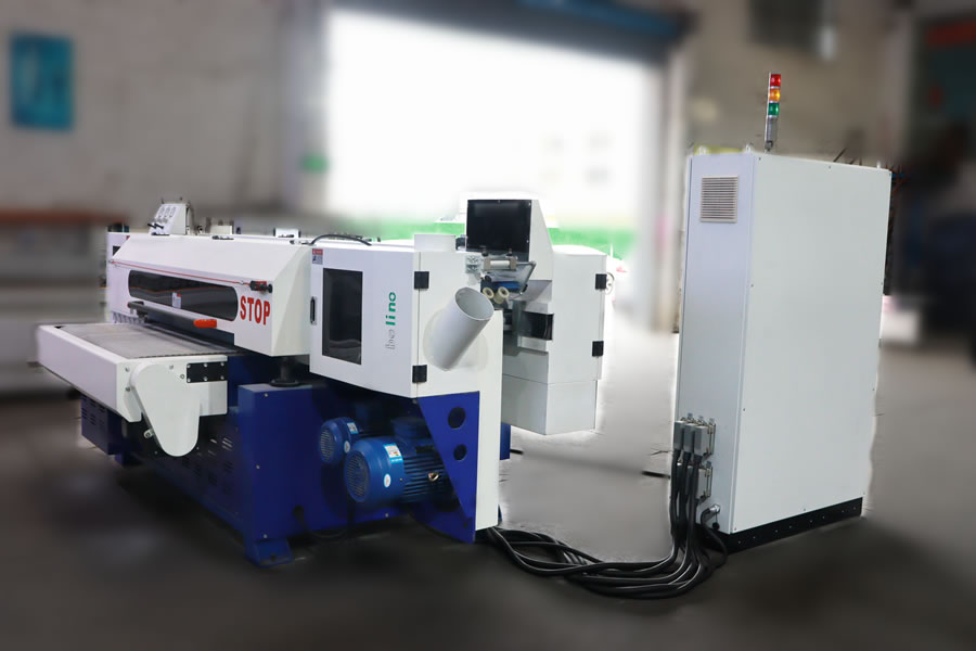 ⑤琴鍵式砂光系統搭配高配的獨立式襯帶結構,通過自動調節琴鍵壓墊單元的削砂力度,使產品不會出現砂穿或漏砂現象。輸送臺帶真空吸附功能。