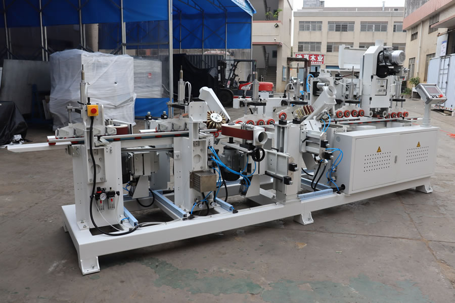 適用于異形或平面窄料的三面砂光處理,主要用于實木、PDF、鋁型材等材料的木線條、門框、門套板、樓梯、百葉窗等需要砂光處理的產品,可對白坯或底漆進行打磨砂光。