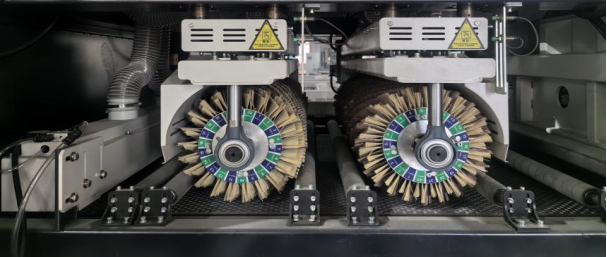 ·一體式組合砂光:前面一組高柔性琴鍵平砂,不易砂穿板面,用來(lái)清除被涂表面的灰塵顆粒,增強(qiáng)涂裝表面的平整度,減少油漆的消耗,有效的提高油漆表面的附著力;后面兩組異型砂輥用來(lái)深度精細(xì)拋光。