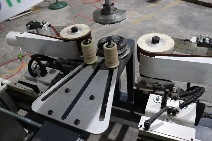 本機適用于白坯圓形工件的外圓邊的砂光打磨。